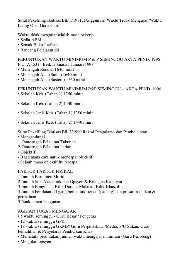 Just add Surat Pekeliling Ikhtisas Bil 3 1981 Penggunaan Waktu Tidak Mengajar of pstransformasiilmu to My Favorites. 13 69 bertarikh 26 Disember 1969 para. SURAT PEKELILINH IKHTISAS BIL.