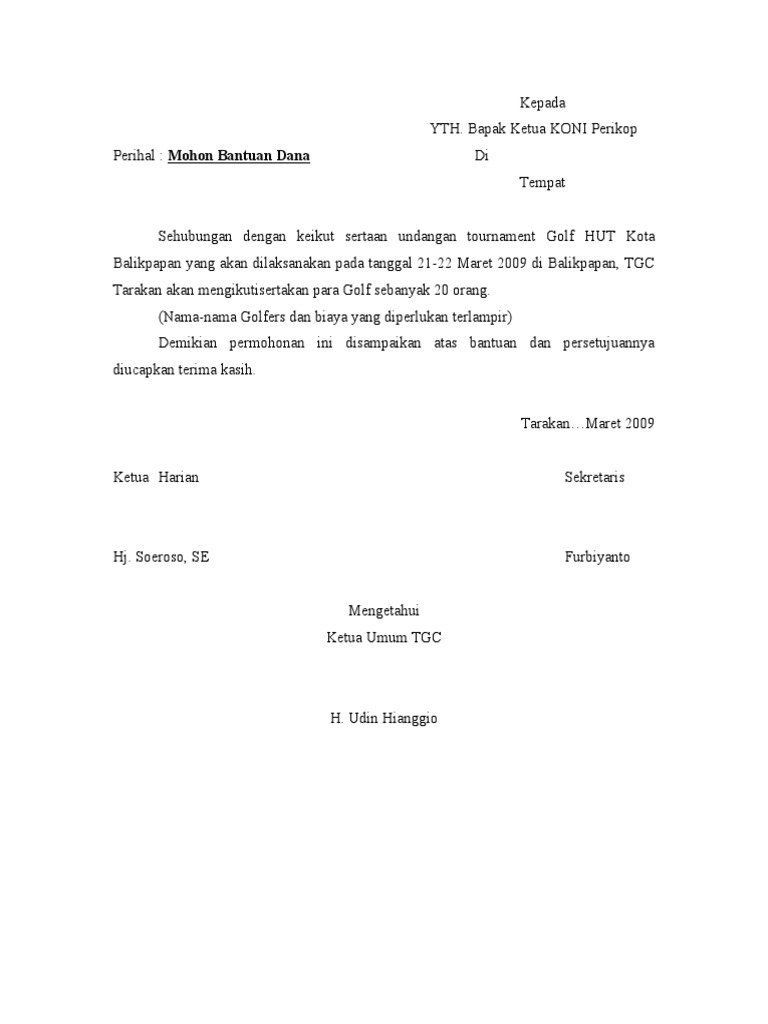 Surat Permohonan Bantuan Dana Pdf